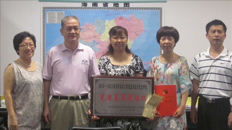 在2010-2012年海南省開展的非公有制經(jīng)濟(jì)組織創(chuàng)先爭優(yōu)活動(dòng)中,華宇集團(tuán)三亞旅業(yè)黨支部榮獲“先進(jìn)基層黨組織”稱號(hào)。7月28日,中共三亞市委統(tǒng)戰(zhàn)部副部長、市工商聯(lián)黨組書記、市非公經(jīng)濟(jì)黨工委書記黃明崇來到三亞華宇旅業(yè)公司,為華宇集團(tuán)三亞旅業(yè)黨支部授匾。