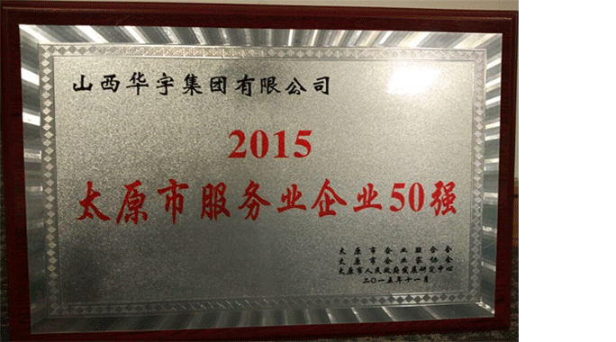 11月13日,在太原市企業(yè)聯(lián)合協(xié)會(huì),太原市企業(yè)家協(xié)會(huì)展開(kāi)的“2015太原企業(yè)家活動(dòng)日暨三項(xiàng)創(chuàng)建活動(dòng)成果發(fā)布會(huì)”上,山西華宇集團(tuán)在2015太原市50強(qiáng)企業(yè)排名中位列第15名,在2015太原市服務(wù)業(yè)50強(qiáng)企業(yè)排名中位列第7名。同時(shí),山西華宇集團(tuán)被確定為2015太原市誠(chéng)信企業(yè)和2015太原企業(yè)文化建設(shè)示范基地。